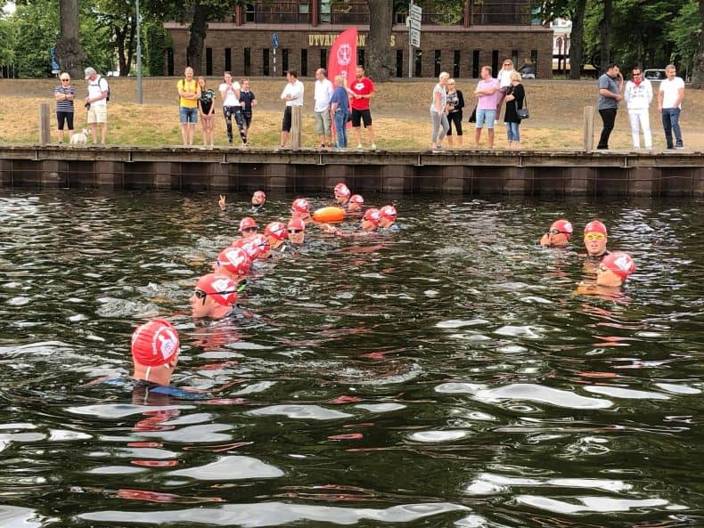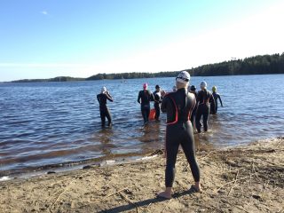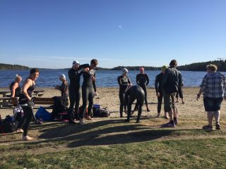 I det högsommarlika vädret som just nu råder i Umeå har den grunda Nydalasjön hunnit värmas upp ovanligt tidigt. Därför samlades ikväll ett gäng simmare från både Masters- och träningsgrupperna i USS för att utnyttja tillfället för öppet vatten-simning, trots att vi inte ens är halvvägs igenom maj ännu.
