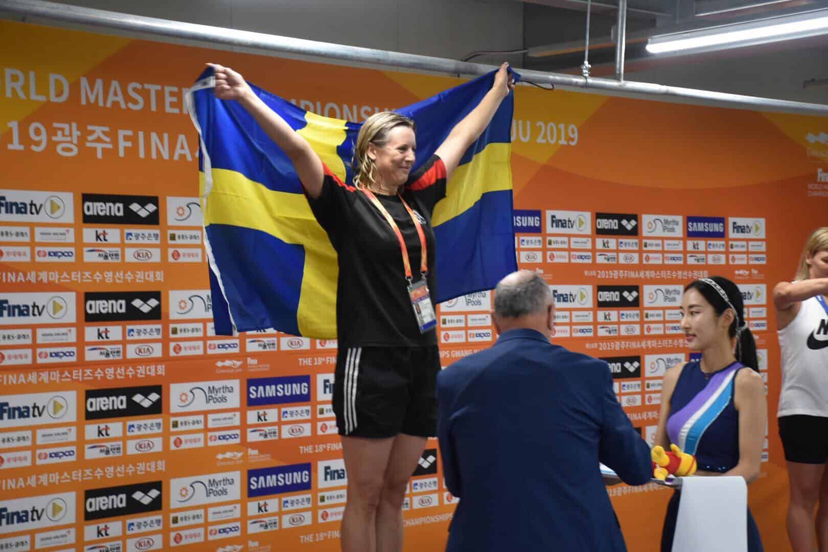 Masters är simning för de som är minst 25 år gamla och man tävlar i åldersklasser om fem år. Camilla i klassen 40-44 år och Ingrid i 55-59 år. Masters-VM arrangeras vartannat år, pågår i en vecka och hittills har det regnat medaljer över damerna från USS. Camilla har tagit guld på 200 ryggsim och 200 frisim samt silver på 200 medley samtidigt som Ingrid simmat hem guld på 200 frisim, silver på 100 fjäril och en fin sjätte plats på 800 frisim.