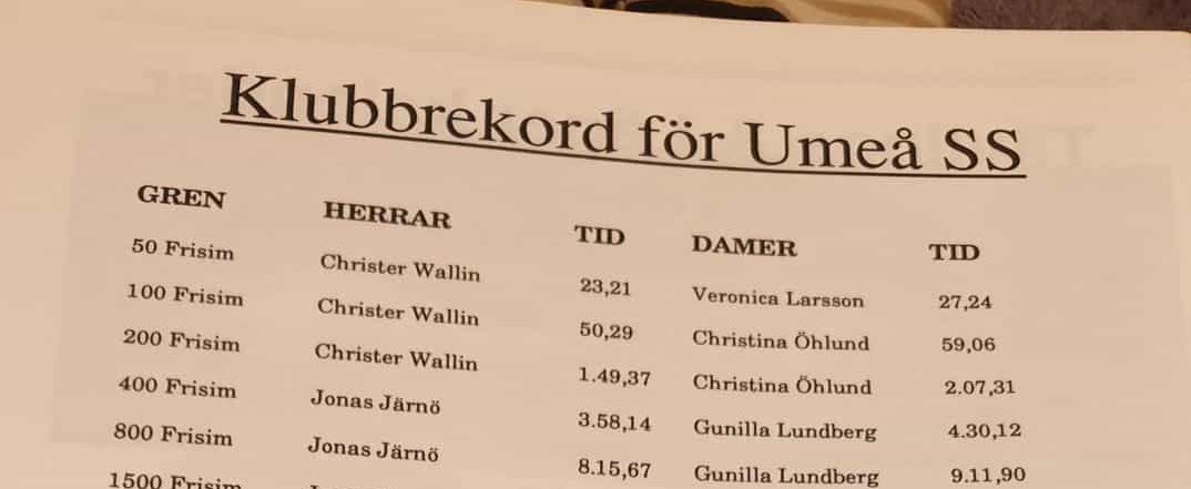 De simmare som fortfarande har kvar rekord satta på 1900-talet utifrån dessa data är Gunilla Lundberg (numera Rasmuson) och Christina Öhlundpå damsidan samt Jonas Järnö och Christer Wallinpå herrsidan.
