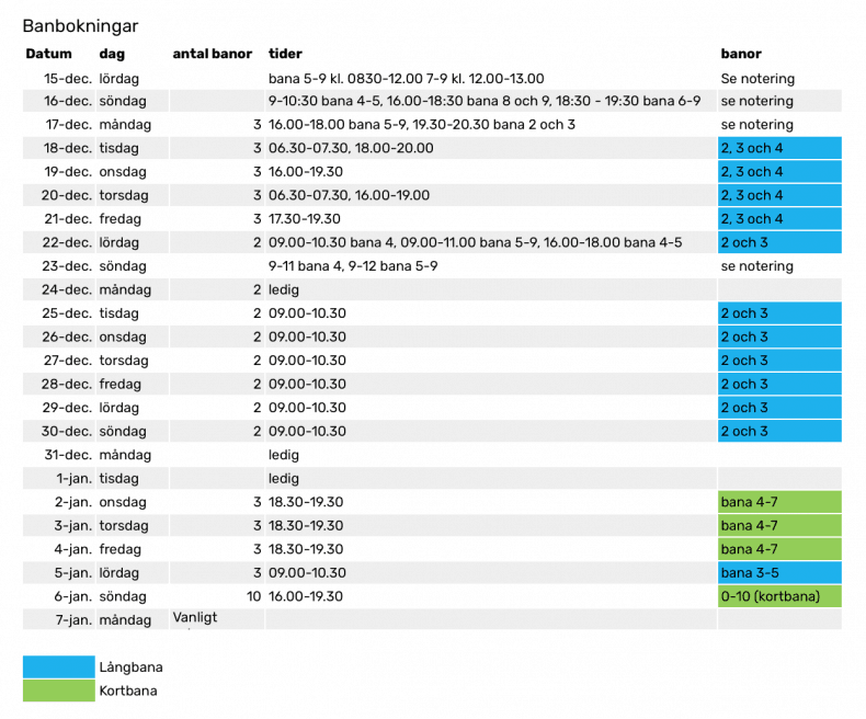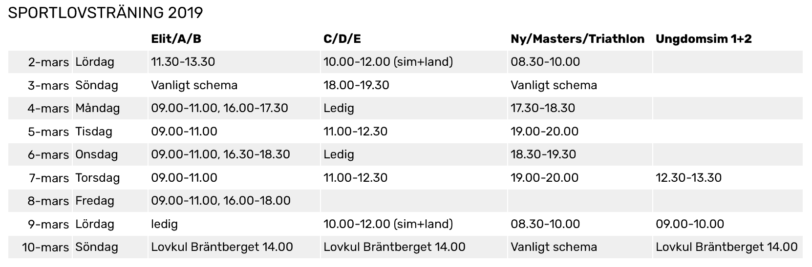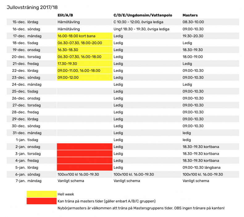Anmälan för både simning och middag ska vara inne senast onsdag 28 november. Klicka här för PDF med grenordningen.